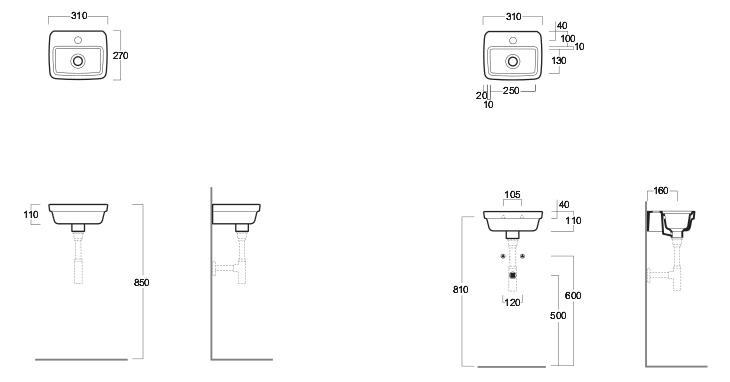 Simas Evolution Umywalka Ścienna 31x27cm EVO13/EVO 13