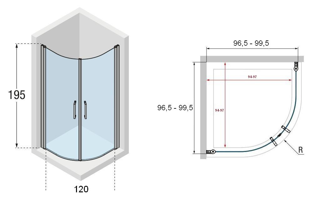 Rzeczywisty wymiar kabiny: 96,5 - 99,5 cm