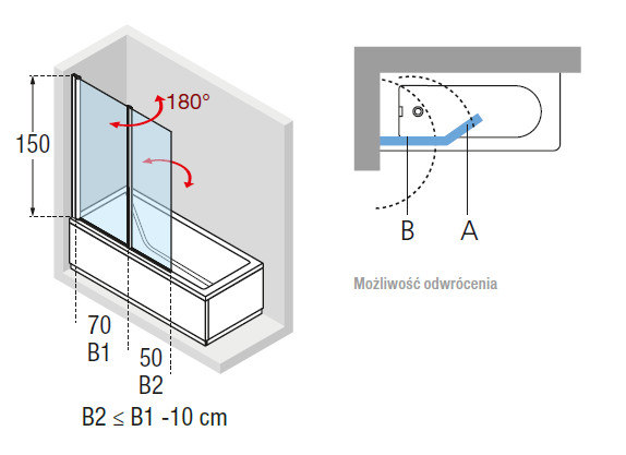 Novellini Aurora 2 Dwuczęściowy Parawan nawannowy profil chrom