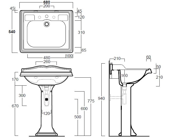 Simas Arcade Umywalka Stawiana na postumencie 68x54cm AR824/AR 824