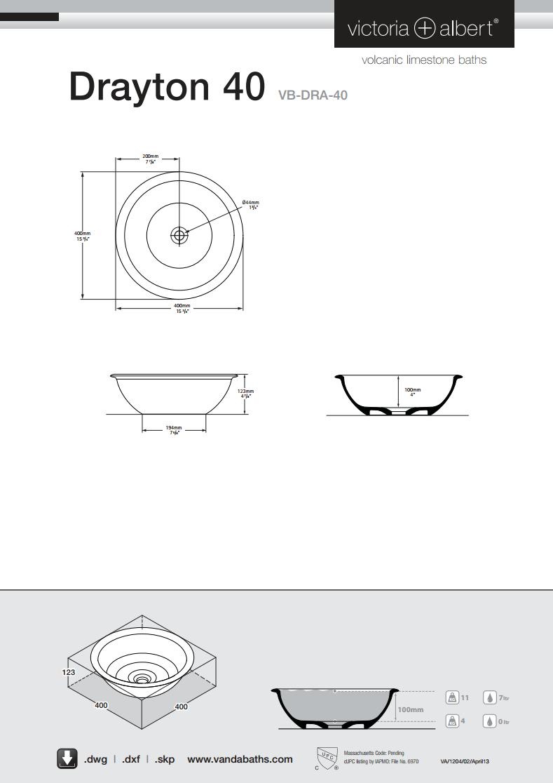 Victoria+Albert Drayton Umywalka Stawiana na Blat 40x40cm Biała VB-DRA-40-NO