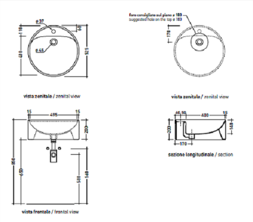 Flaminia Twin Set Umywalka Ścienna 52cm biała 5050/S