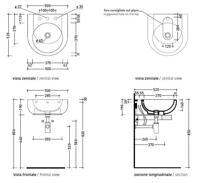 Flaminia Pass Umywalka Ścienna 50cm biała PS50L
