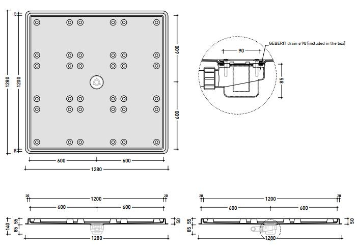 w komplecie odpływ Ø 90 mm
