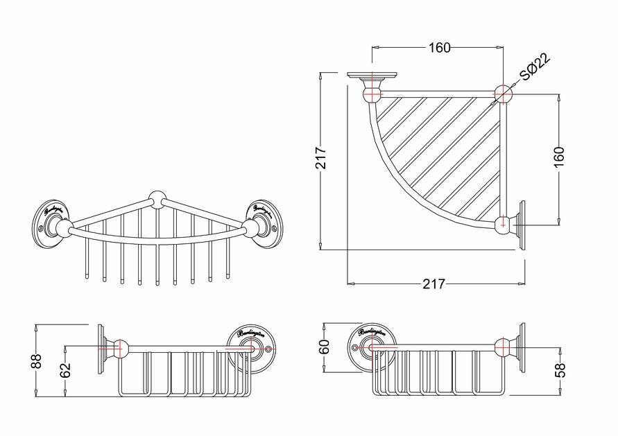 Burlington Koszyk narożny głębokość 62 mm Chrom A22CHR