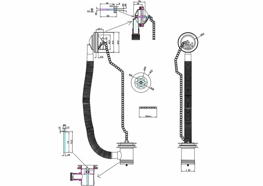 Burlington Classic Wannowy Korek Z Łańcuszkiem Chrom W3