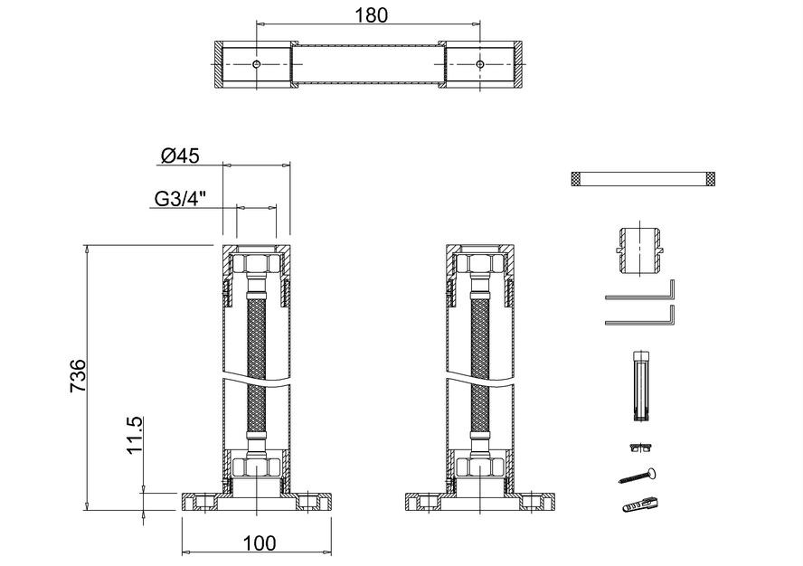 Burlington Nogi do baterii wannowej z poziomym wspornikiem