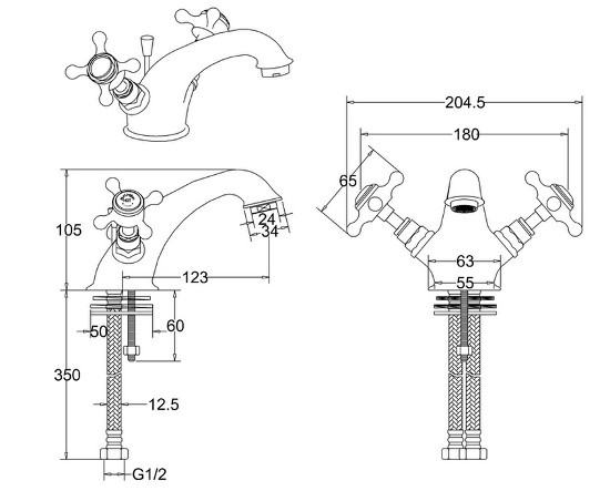 Burlington Stafford Bateria umywalkowa 1-otworowa z pokrętełami chrom STA11-QT Kran z zakrzywioną wylewką Instalacja na blacie Tradycyjny design W zestawie z tradycyjnym zaworem śrubowym