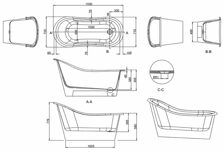 Burlington Emperor Wanna Wolnostojąca 153x72,5cm biała ET13B