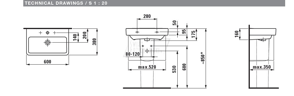 Laufen Pro Umywalka ścienna 60x38 cm biała H 818959 000 109 1