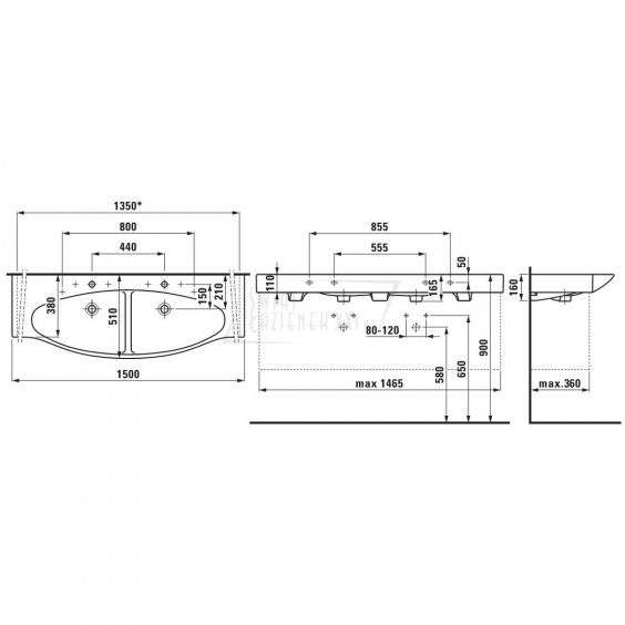 istnieje możliwość zamówienia umywalki z 3 otworami na baterię