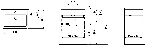 Laufen Living City Umywalka ścienna 60x46 cm biała H 817433 000 109 1