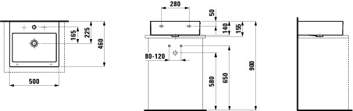 - szlifowany spód umywalki umożliwia postawienie na blacie (wymagany montaż umywalki do ściany)