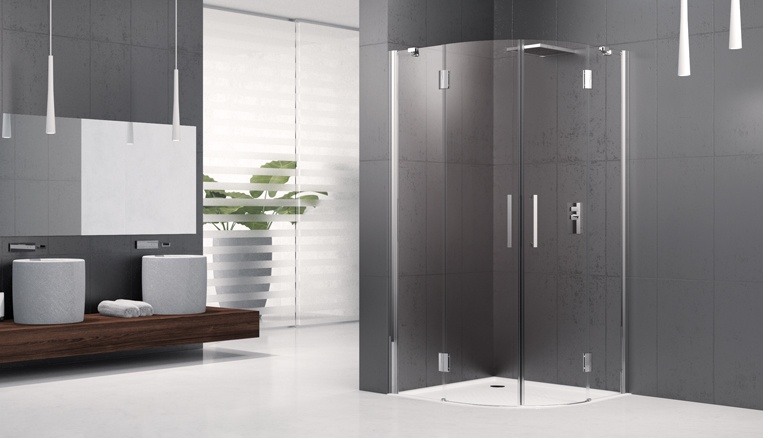 Kabina prysznicowa półokrągła z 2 skrzydłami i ściankami stałymi