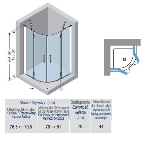 Rzeczywisty wymiar kabiny: 76,5-79,5 cm