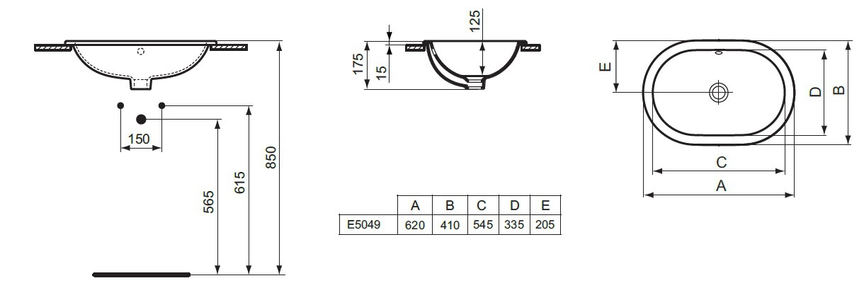 Ideal Standard Connect Umywalka wpuszczana w blat 62 cm biała E504901