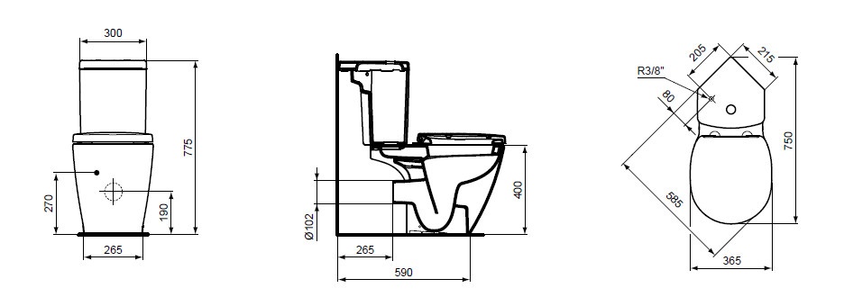 Odpływ poziomy, do odpływu pionowego należy zamówić kolano przyłączeniowe 90° J324867.