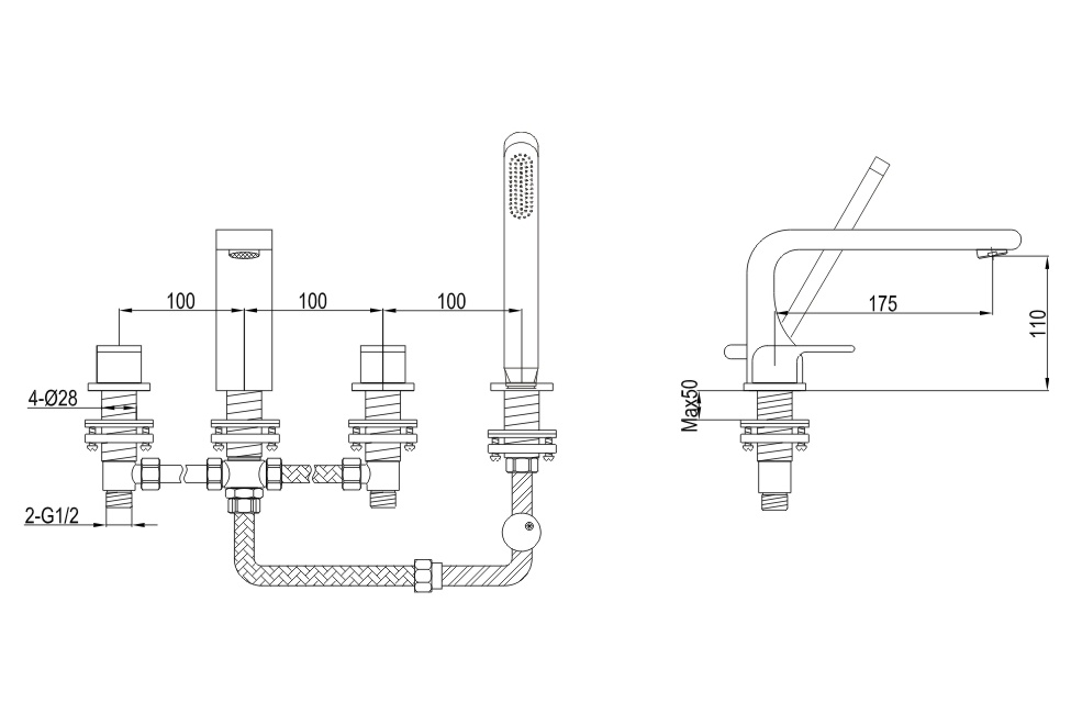 KOHLMAN SAXO Bateria wannowa czterootworowa QB240S