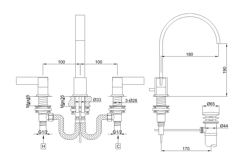KOHLMAN DEXAME Bateria umywalkowa QB200D