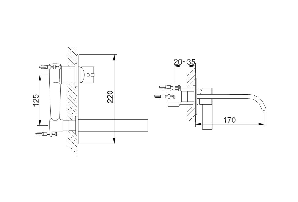 KOHLMAN DEXAME Bateria umywalkowa ścienna QW185D