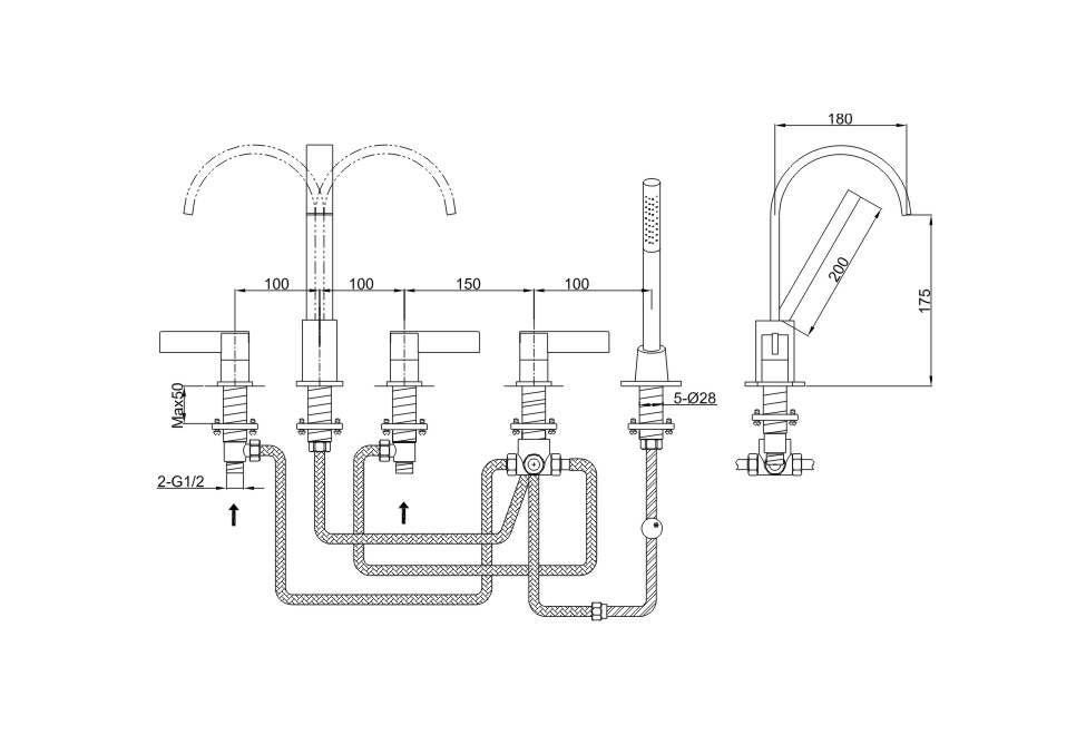 KOHLMAN DEXAME Bateria wannowa pięciootworowa QB242D