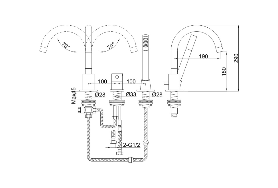 KOHLMAN ROXIN Bateria wannowa trzyotworowa QB241R