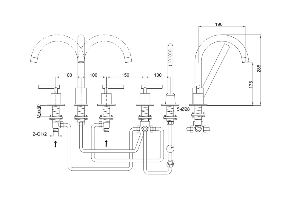 KOHLMAN ROXIN Bateria wannowa pięciootworowa QB242R