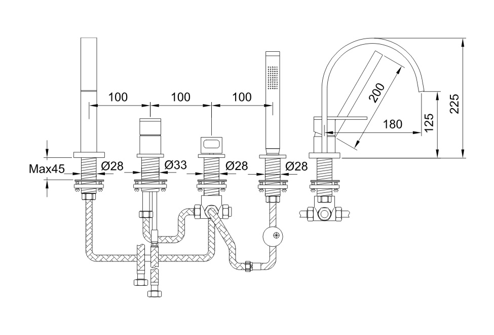 KOHLMAN NEXEN-S Bateria wannowa czterootworowa SQB244U