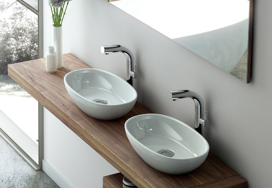 Umywalka nablatowa. Bez możliwości zamontowania baterii.