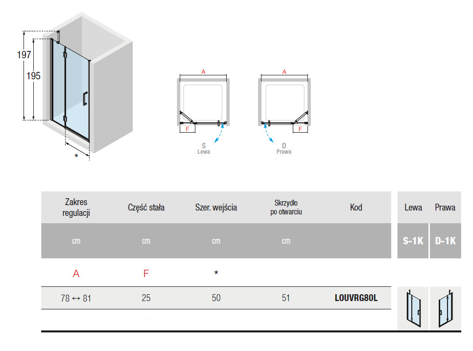 Novellini Louvre G Drzwi do wnęki 80 cm z elementem stałym lewe profil chrom LOUVRG80LS-1K