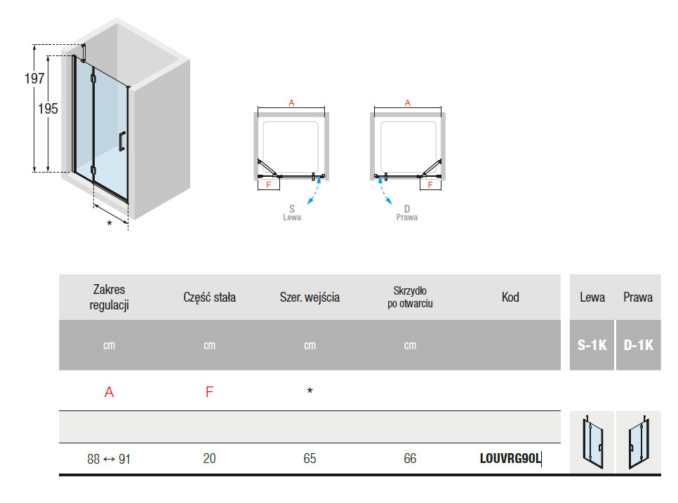 Novellini Louvre G Drzwi do wnęki 90 cm z elementem stałym lewe profil chrom LOUVRG90LS-1K
