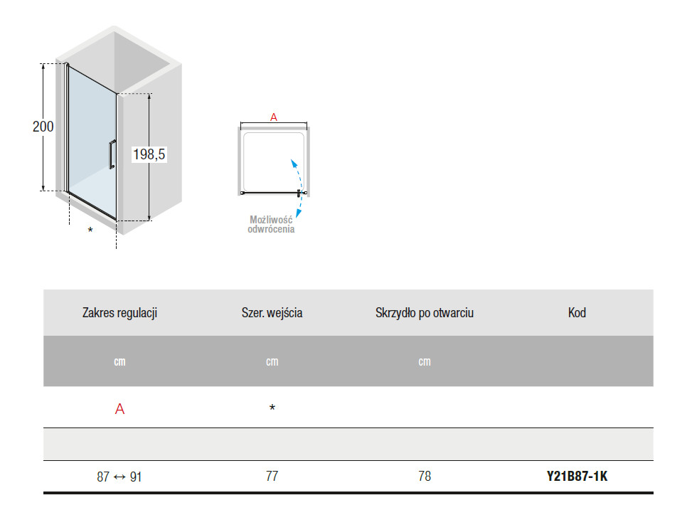 Novellini Young 2.0 1B Drzwi do wnęki jednoskrzydłowe 90 cm profil chrom Y21B87-1K