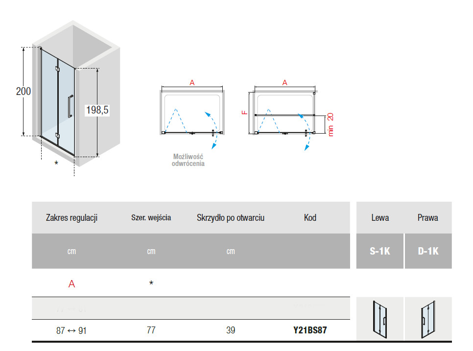 - Możliwość otwierania drzwi na zewnątrz oraz do środka kabiny
