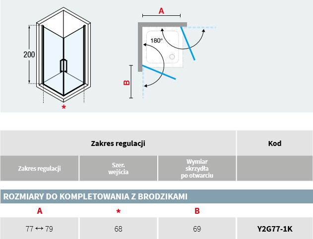 Novellini Young 2.0 2G 80 Kabina narożna dwuskrzydłowa z wejściem z narożnika profil chrom Y2G77-1K