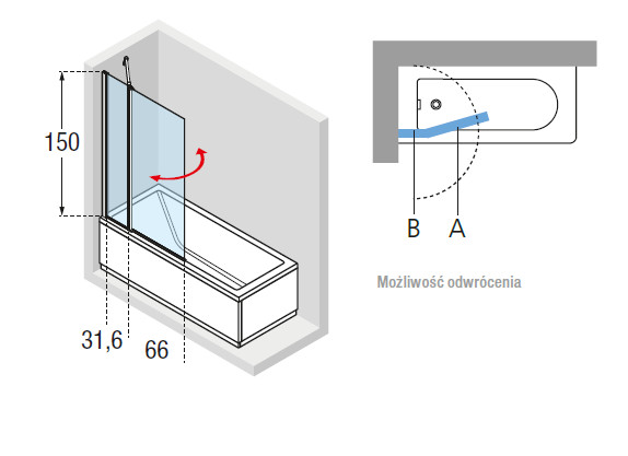 Novellini Aurora 3 Dwuczęściowy Parawan nawannowy profil chrom