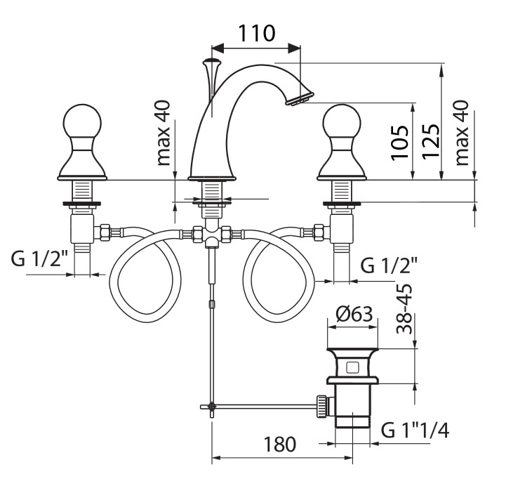 Giulini Giovanni Odessa bateria umywalkowa 3-otworowa 3912