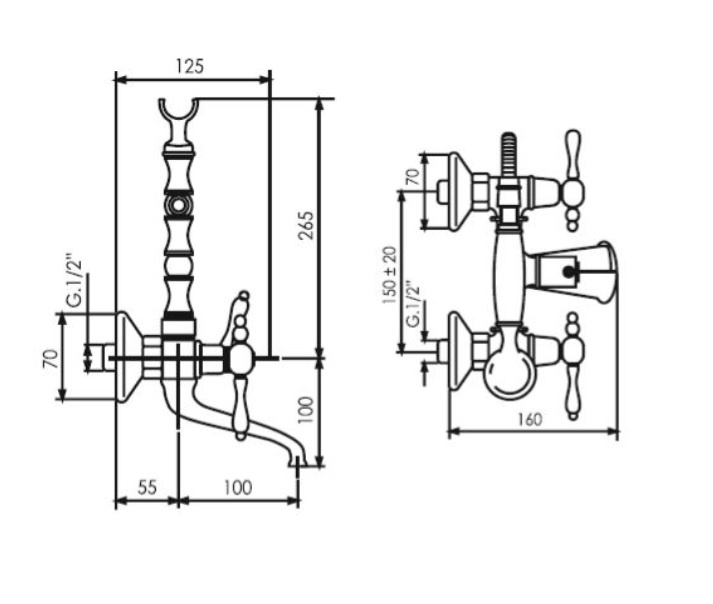 Giulini Giovanni Praga bateria wannowa ścienna z prysznicem 7500