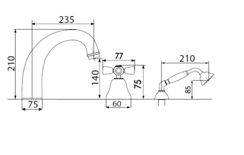 Giulini Giovanni Parigi bateria wannowa 5-otworowa z prysznicem 7360
