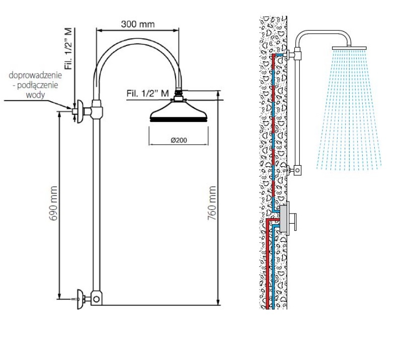 Bateria w komplecie z zestawem natryskowym i deszczownią 20 cm i elementem podtynkowym