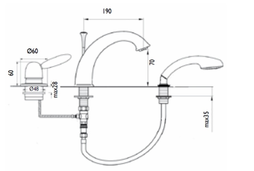 Giulini Giovanni Symphony bateria wannowa 3-otworowa z prysznicem