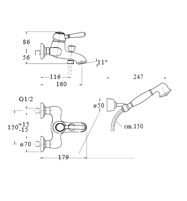 Cristina Art Elite bateria wannowa ścienna z prysznicem AE101