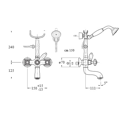 Cristina Londra bateria wannowa ścienna z prysznicem LD101