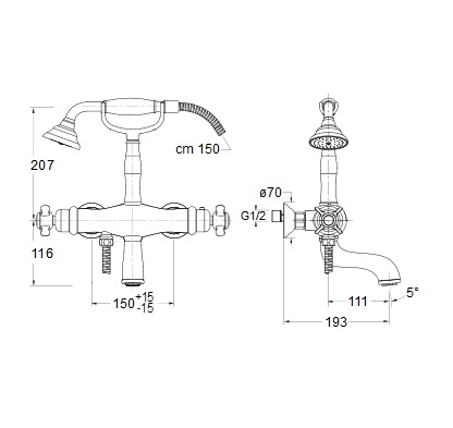 Cristina Londra bateria wannowa ścienna termostatyczna z prysznicem LD182