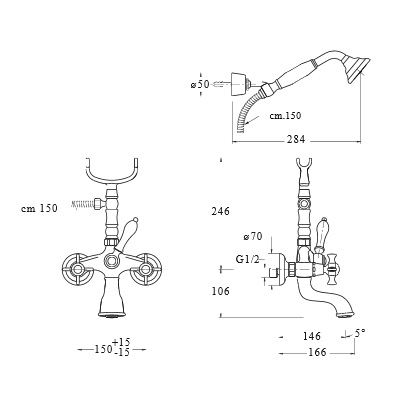Cristina Canova bateria wannowa ścienna z prysznicem