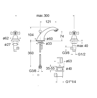 Cristina Canova bateria umywalkowa 3-otworowa CN201