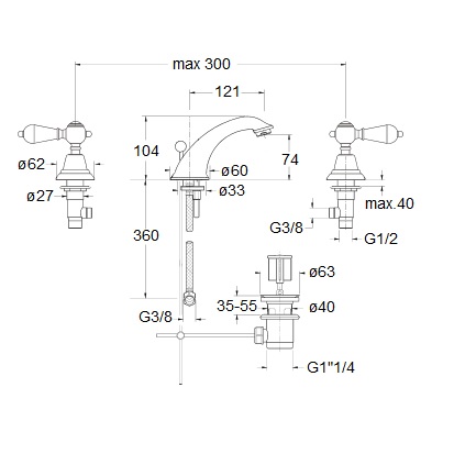 Cristina Canova Elite bateria umywalkowa 3-otworowa