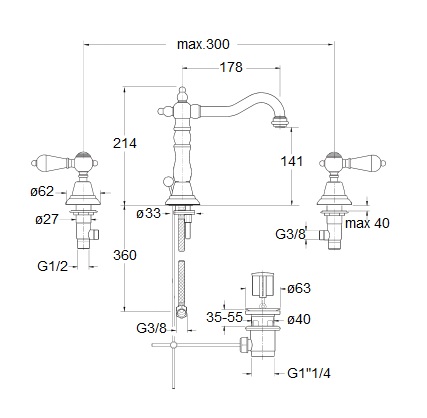 Cristina Canova Elite bateria umywalkowa 3-otworowa