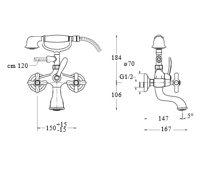 Cristina Impero bateria wannowa ścienna z prysznicem