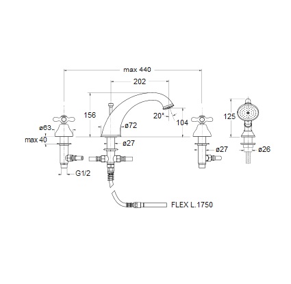 Cristina Impero bateria wannowa 4-otworowa z prysznicem