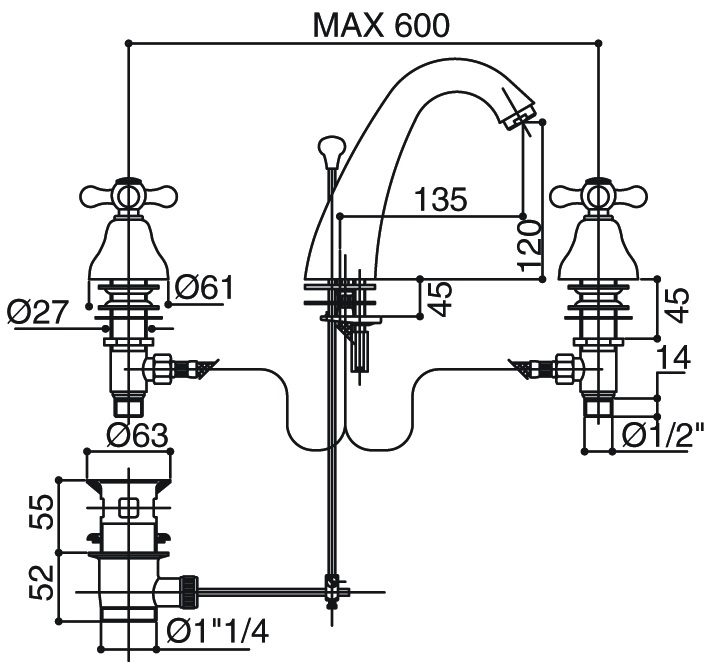 Bongio Axel bateria umywalkowa 3-otworowa 15501